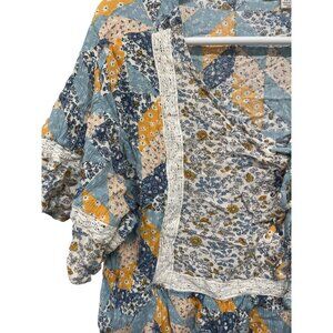 American Eagle Medium Floral Patchwork Blouse With Lace Trim