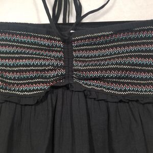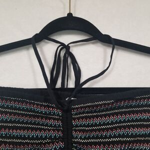 American Eagle Medium Smocked Peplum Hem Bandeau Crop Tube Top Black Multicolor