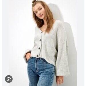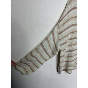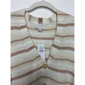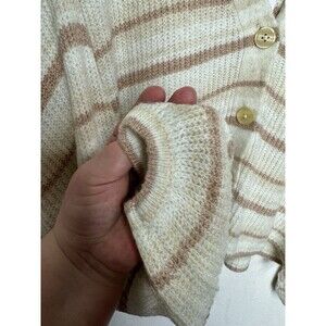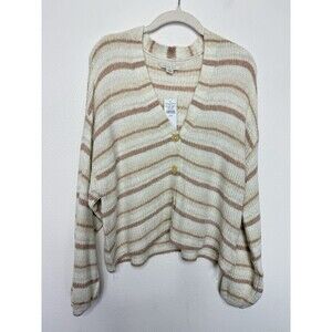 American Eagle Medium Sweater Beige Striped Cropped Button Up Balloon Sleeve NWT