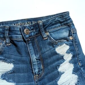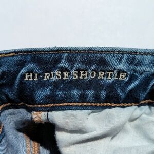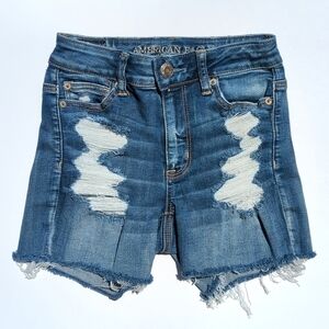 American Eagle Medium Wash Distressed High Rise Shortie Jean Denim Shorts Blue 0