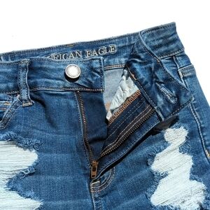 American Eagle Medium Wash Distressed High Rise Shortie Jean Denim Shorts