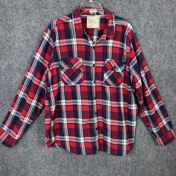 This American Eagle Outfitters Flannel Shirt is perfect for any occasion, whether it's a casual day out or a day at work. The shirt features a collared neckline and long sleeves, with a button-up closure and a chest size of 48 inches. The shirt is made of 100% cotton, making it breathable and perfect for all seasons.