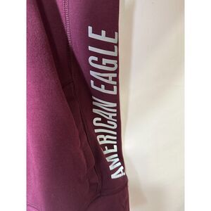 American Eagle Men's Big & Tall Burgundy Sweatshirt with Side Pockets Size XXXL. Burgundy with reflective decals. Great pre-owned condition, no rips, tears, snags, pulls or stains.