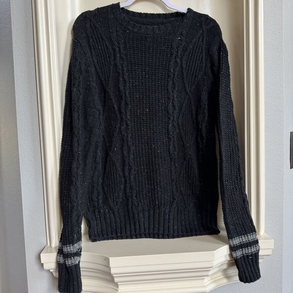 American Eagle Men's Black Cable Knit Crew Neck Sweater Size Medium