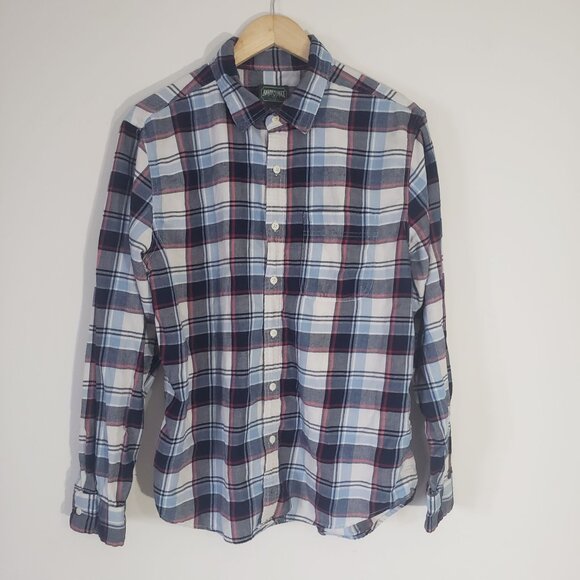 American Eagle Mens Blue Plaid Button-Up Long Sleeve Shirt Size Large Cotton