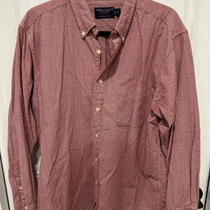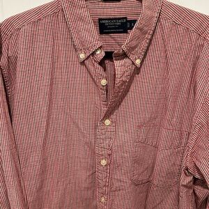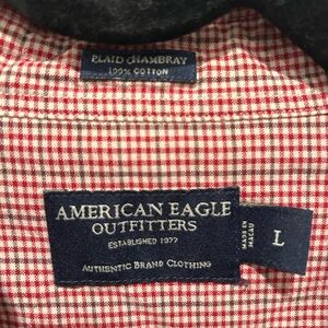 American Eagle Mens Chambray Shirt Red Brown Plaid Long Sleeve Button Down L