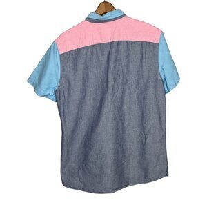 American Eagle Men's Medium M Slim Fit Blue Red Color Block Oxford Button Shirt