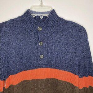 American Eagle Mens Medium Pullover 1/4 Button Cable Knit Sweater Striped EUC.