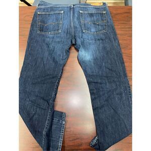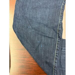 Lightly used. Has some blue paint splatters on the front and back (shown in pictures). Has a light wear spot on the back (shown in pictures). Size 34x30.