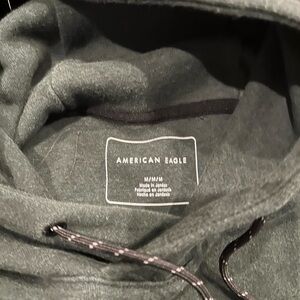 Great condition- no holes or stains. Super soft on the inside. A dark green color. American Eagle Men’s Pullover Hoodie Logo on Arms Size Medium.