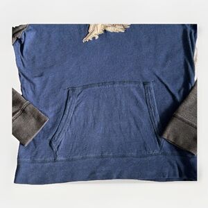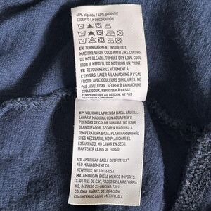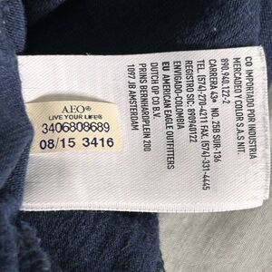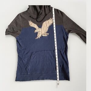 American Eagle Mens S Big Eagle Logo Distressed Thermal Long Sleeve Hoodie Henley Blue Gray