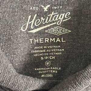 American Eagle Mens S Big Eagle Logo Thermal Long Sleeve Hoodie Henley Blue Gray