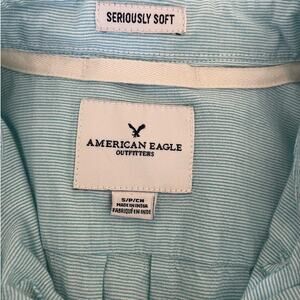 American Eagle Mens Seriously Soft Shirt S Turquoise Striped Button Up Preppy Coastal Travel