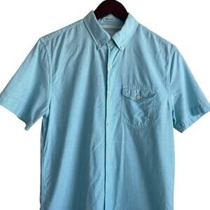 American Eagle Mens Shirt S Turquoise Striped Button Up Preppy Coastal Travel