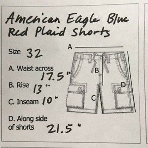 American Eagle Mens Shorts - size 32 AE Plaid Blue Red Classic Length