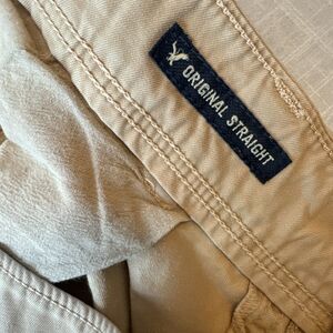 American Eagle Mens 38 Khaki Original Straight Chino Preppy Gorpcore Pants. Color is khaki. Inseam measures closer to 30 than 32 - see measurements