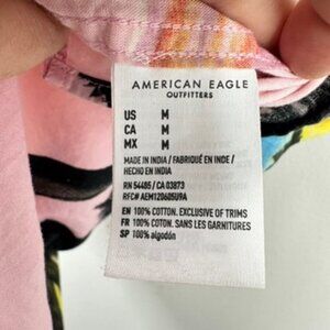 American Eagle Men's Size Medium Cotton Camp Shirt Bright Pink Palm Trees Summer
