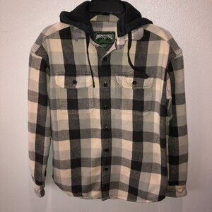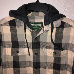 American Eagle Mens Small Gray Plaid Flannel Long Sleeve Button Up Hoodie Sz S