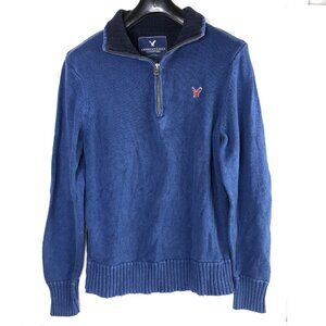 American Eagle Mens Sweater Blue Size L 100% Cotton 1/4 zip Fisherman Barn Chore