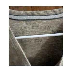 American Eagle Mens Sweater XXL Heather Beige Cotton Logo V Neck Long Sleeves PullOver Casual Business Church AEO Tagless