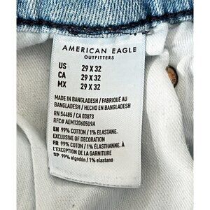 American Eagle men's "Airflex" Athletic straight leg men's jeans. Jeans are light wash with a zip fly front. They're listed a man's size 29 x 32 but actual length is 30.5.”