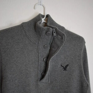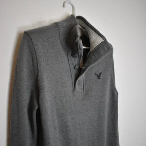 American Eagle Mens Sz S Classic Fit Quarter Zip Button Pullover Sweater Cotton