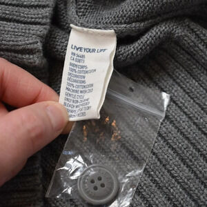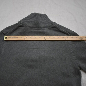 Pre-owned, good condition. No visible holes or stains. Minimal signs of wear. Button bag is still attached. Classic fit. Minimalist style in a neutral shade of gray. Long sleeves with ribbed cuffs. Ribbed hem and neckline. Quarter zip with button closure. Size per tag: S (Small). Fabric: 100% Cotton. Size per tag does not guarantee desired fit, please see pictures for measurements.