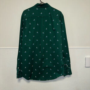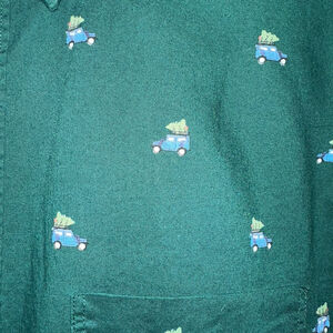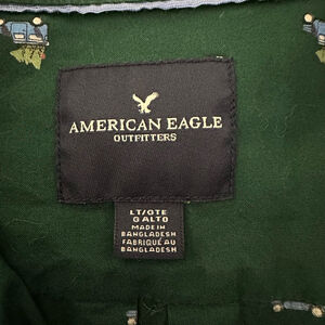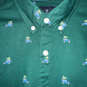 American Eagle Men’s Top Button Down Large Tall Green Car Christmas Long Sleeve
