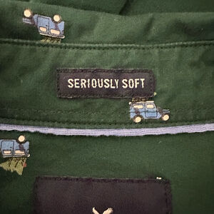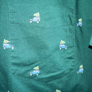 Celebrate the festive season in style with the American Eagle Men’s Top Button Down. This long-sleeve shirt features a playful green car Christmas print that instantly adds cheer to any holiday gathering. Crafted from soft, breathable fabric, it ensures all-day comfort while keeping you looking sharp. The large tall fit accommodates taller frames, providing a flattering silhouette without sacrificing style. Perfect for pairing with jeans or dress pants, this shirt is versatile enough for both casual and semi-formal occasions. Don't miss out on this seasonal essential; stock is limited and it’s a perfect gift for loved ones or yourself!