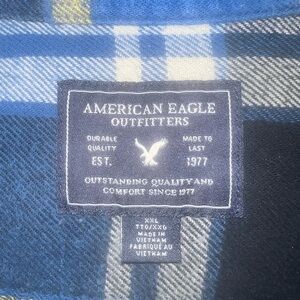American Eagle Men's XXL Blue Yello Plaid Flannel Button Front Shirt NWOT