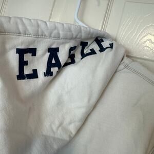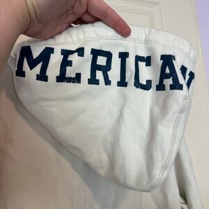 American Eagle Men’s Zip Up Hoodie Size XL Ivory/Gray/ Blue Logo Preppy