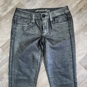 American Eagle Metallic Black and Gold Jegging Jeans 4 Reg