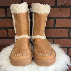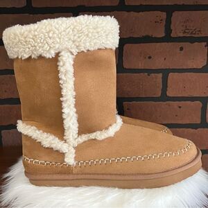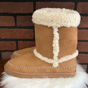 American Eagle Mid Calf Faux Fur Boots Womens Sz 11 Tan Beige Cozy Comfy Neutral