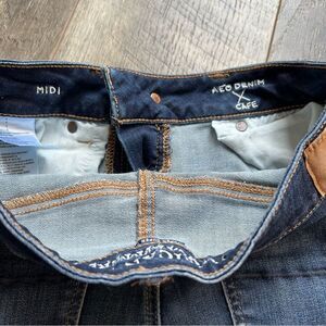 American Eagle Midi Dark Blue Denim Super Stretch Shorts Cuff Raw Hem Size 4