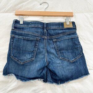 American Eagle Midi Jean Shorts Women’s 4 Blue Denim Raw Hem Next Level Stretch
