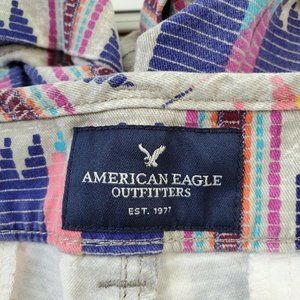 American Eagle Midi Shorts Boho Aztec Tribal Grey Purple Pink Stretch