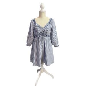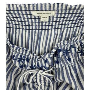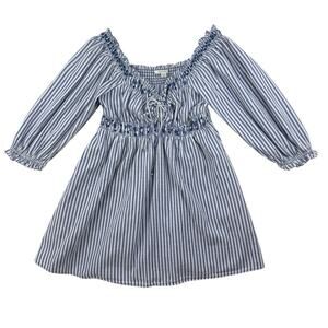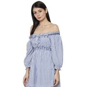 American Eagle Mini Dress Blue Striped Puff Sleeve Off Shoulder Smocked Medium