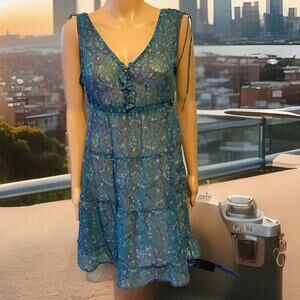 American Eagle Mini Dress Cover Up Sz4 Silky Sheer Floral Boho Double VNeck Sexy