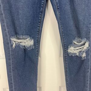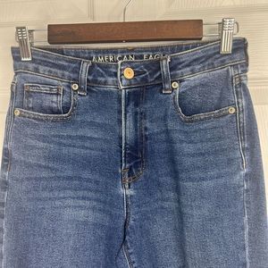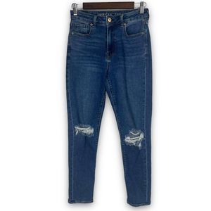 American Eagle Mom Dark Blue Wash Distressed Stretch Skinny Denim Jeans Size 0