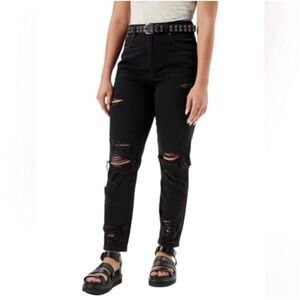 American Eagle Mom Jean Black Denim High Rise Distressed Ripped Women’s 6 Grunge