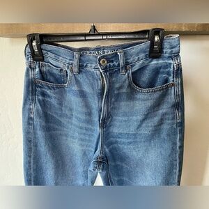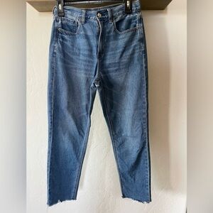 American Eagle| Mom Jean, Raw Hem—Medium Wash; Size 4•••