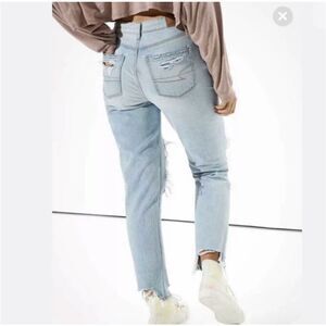 American Eagle Mom Jean Comfort Stretch Waistband Destroyed Ripped Jean Light 0