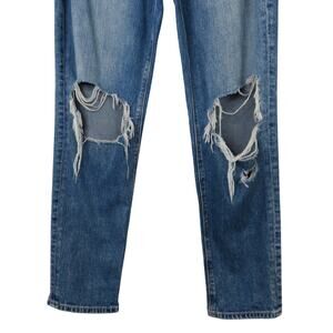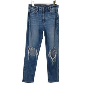 American Eagle Mom Jeans High Rise Straight Leg Ripped Jeans Strigid Size 8
