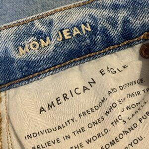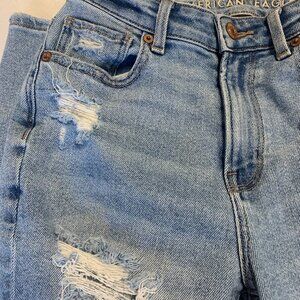 American Eagle Distressed Mom Jeans size 0. Pre owned condition with no stains. Lighter wash., highly distressed.
