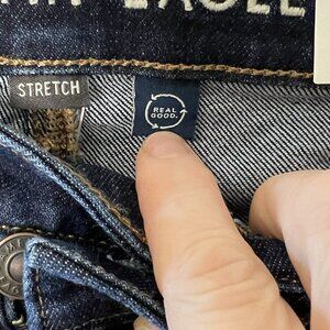 American Eagle Mom Jeans Stretch Super High Rise Dark Wash Denim 2 Long