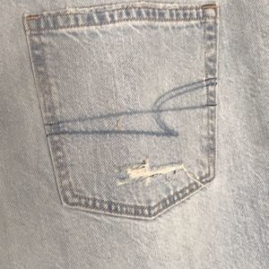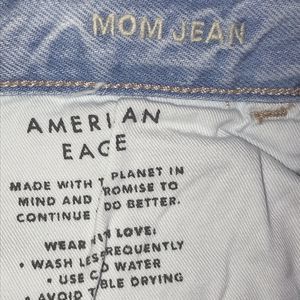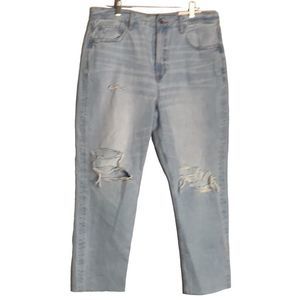 American Eagle Mom Jeans Womens 14 Short Relaxed High Rise Blue Distressed