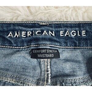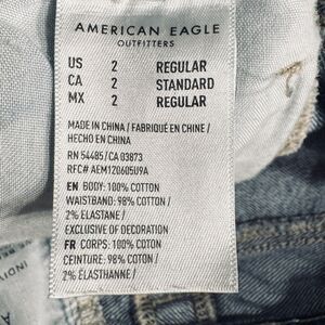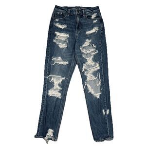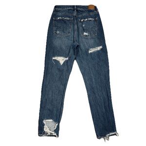American Eagle Mom Jeans Womens 2 Blue Destroyed Distressed Denim Measures 26x27