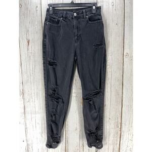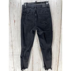 American Eagle Mom Jeans Womens Size 2 Gray Denim Distressed Ripped High Rise