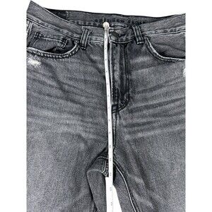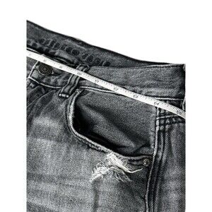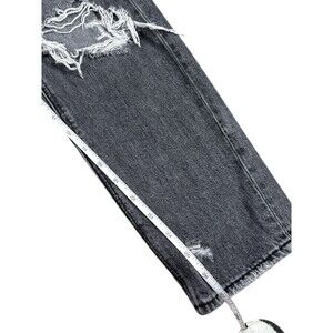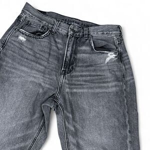 Step up your casual style with these on-trend American Eagle mom jeans. Crafted from a soft cotton blend with a hint of stretch, they feature a classic high-rise waist, relaxed leg, and lightly tapered ankle. The faded black wash and intentional distressing give them a laid-back, vintage vibe that pairs perfectly with sneakers, boots, or heels.