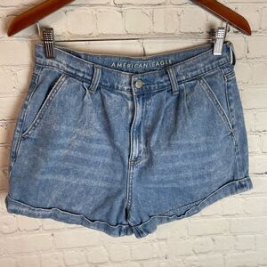American Eagle Mom Shorts Rolled Cuff Pleated High Rise Denim 8